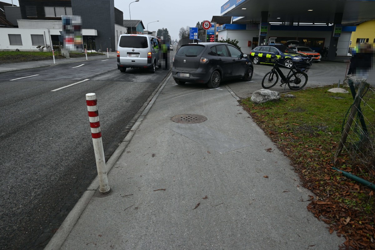 Gleichzeitig fuhr ein gleichaltriger Mann mit seinem E-Bike auf dem Veloweg der Hohenemsertrasse in dieselbe Richtung. Auf Höhe einer Tankstelle bog die Autofahrerin nach rechts ab, um auf dem Tankstellengelände zu wenden. Dazu überquerte ihr Auto den Veloweg. Folglich kam es zur Kollision zwischen dem E-Bike und dem Auto, wobei das E-Bike des 35-Jährigen in die rechte Seite des Autos prallte.