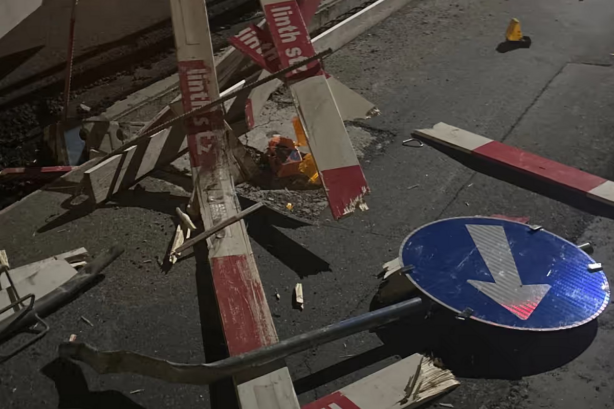 Diesbach GL - Mit Baustellenabschrankung kollidiert und geflüchtet