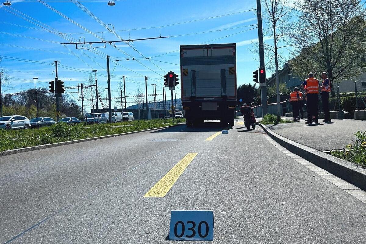 Kurz nach 10 Uhr standen ein 59-jähriger Lastwagenfahrer und eine ebenfalls 59-jährige E-Rollerfahrerin auf der Zürcherstrasse Richtung Schlieren, bei der Einmündung Asylstrasse, am Rotlicht.