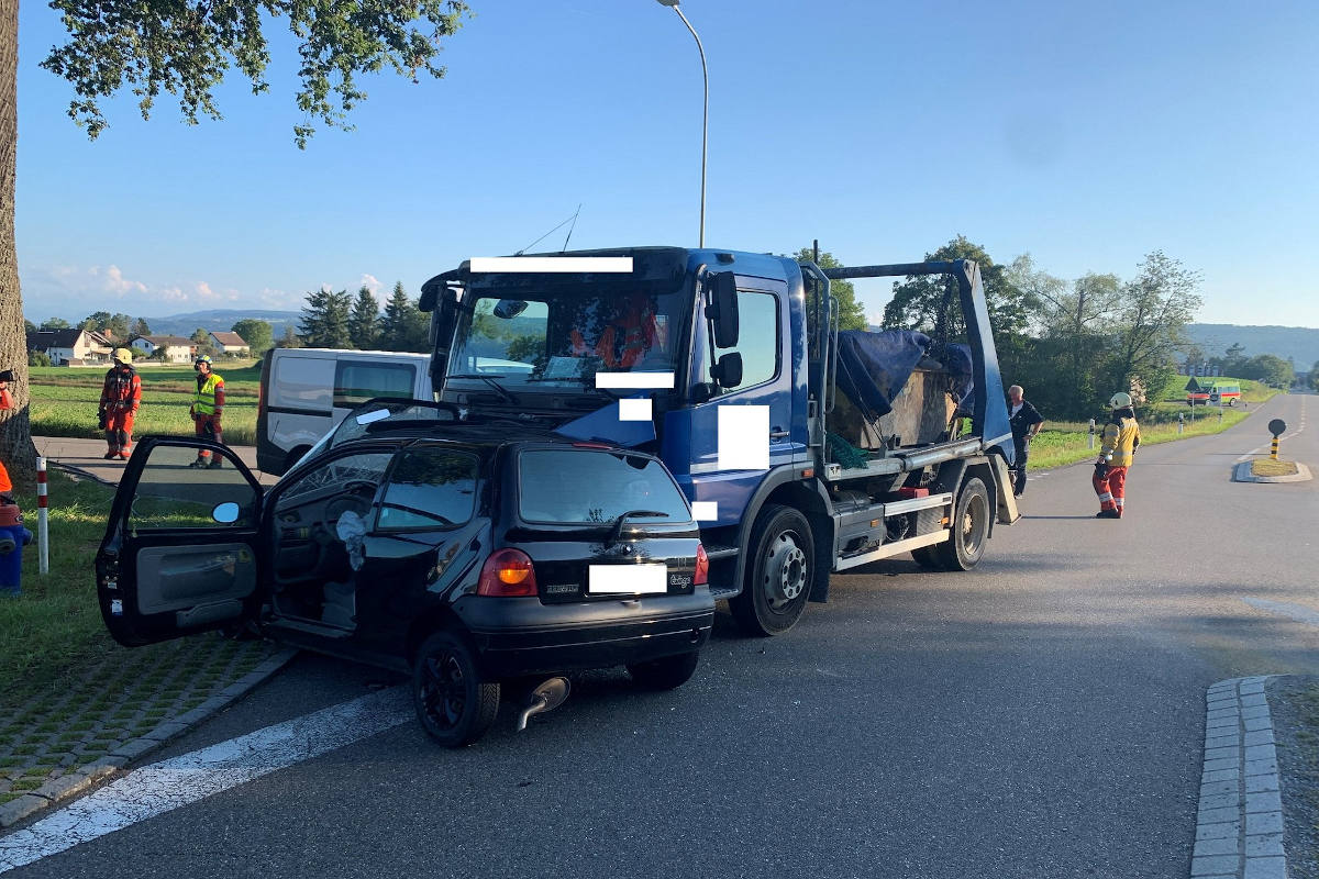 Bei einer Kollision zwischen einem Personenwagen und einem Lastwagen hat sich am Donnerstagabend (2.9.2021) in Dietlikon ein Mann mittelschwere Verletzungen zugezogen.