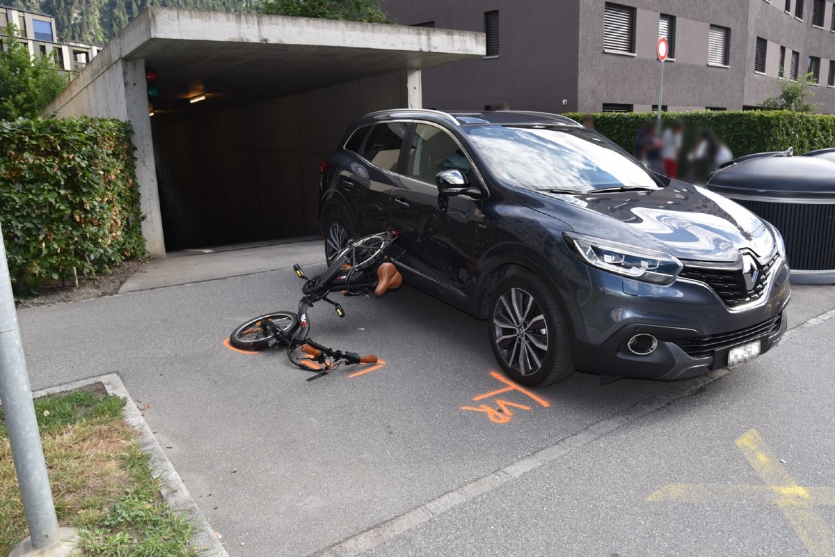 Gleichzeitig beabsichtigte der 24-Jährige mit seinem E-Bike über das Trottoir die Garageneinfahrt zu überqueren. Dabei kollidierte dieser frontal mit der rechten Fahrzeugseite des Autos. Durch die Kollision erlitt der Zweiradlenker leichte Verletzungen und musste mit einer Ambulanz der Rettung Chur ins Kantonsspital Graubünden gebracht werden.