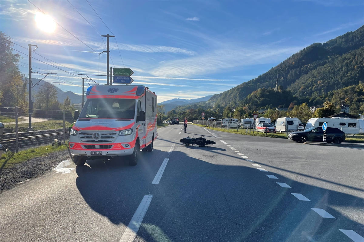Am Sonntagnachmittag ist es in Domat/Ems bei einem Abbiegemanöver zu einer Kollision zwischen einem Auto und einem Motorrad gekommen. Der Motorradfahrer wurde verletzt.