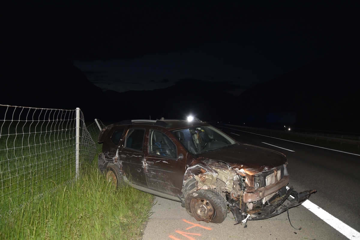 Kurz nach 03.45 Uhr meldete eine Drittperson, dass in Domat/Ems auf der Südspur der Autobahn N13, Höhe Kraftwerk Reichenau, ein stark beschädigtes Fahrzeug entlang dem ebenfalls beschädigten Wildschutzzaun auf dem Pannenstreifen stehe. Beim Eintreffen der ersten Polizeipatrouille konnte nur der Meldeerstatter an der Unfallstelle angetroffen werden.