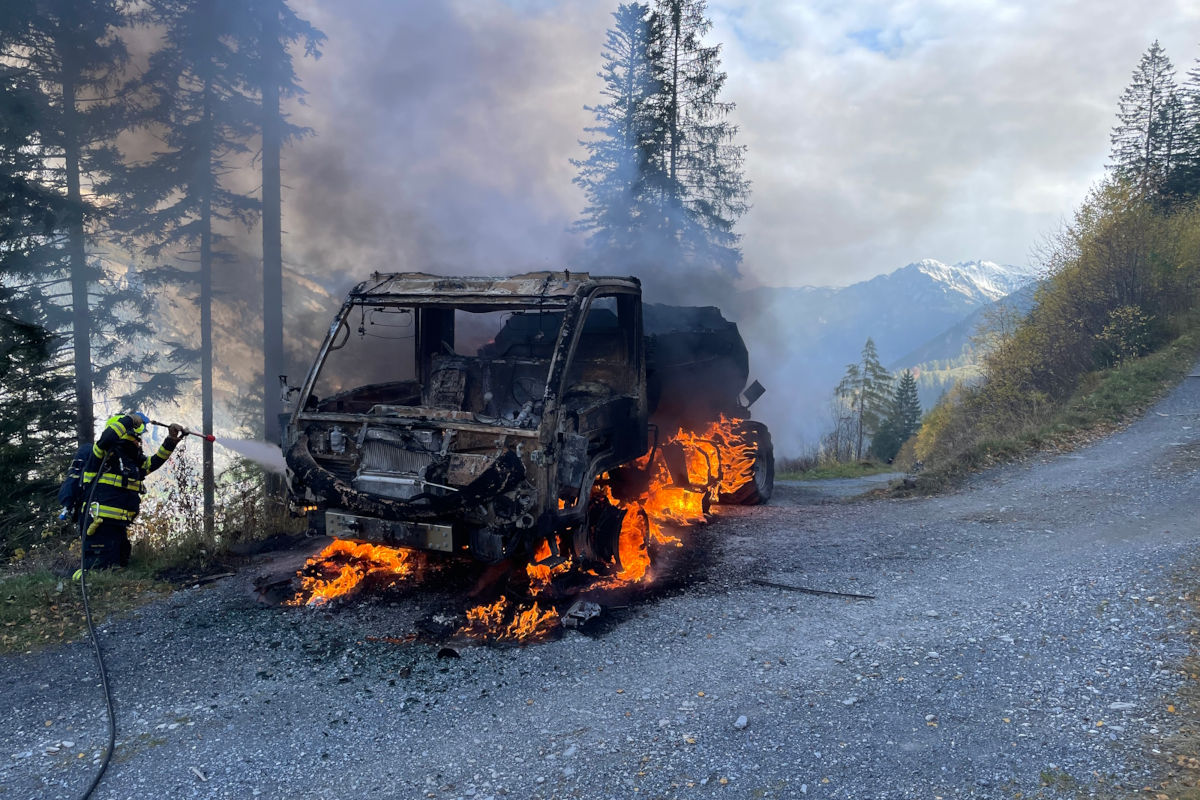 An einer weniger steilen Stelle hielt er an und stellte unter der Fahrerkabine ein Feuer fest. Er brachte sich sowie seine Tochter sofort in Sicherheit und alarmierte die Einsatzkräfte über den Notruf.