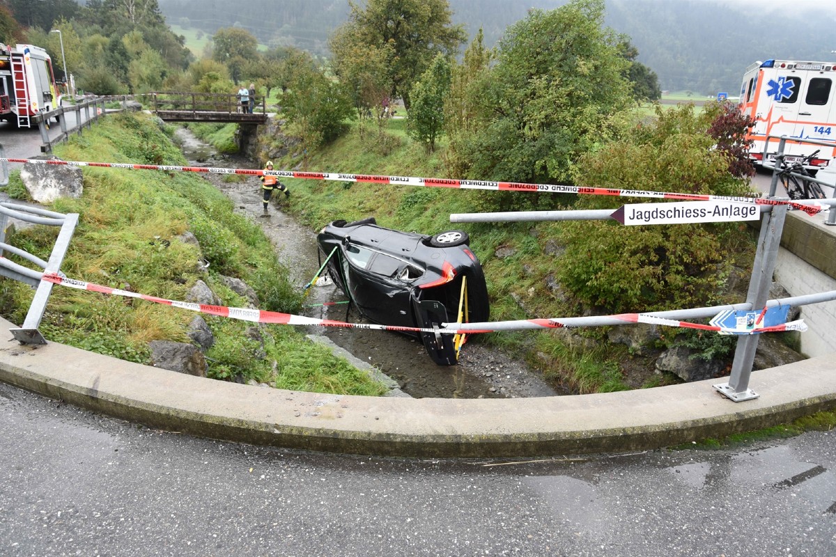 Für die Bergung des Personenwagens standen die Feuerwehr Chur und ein Abschleppdienst im Einsatz. Vor Ort war auch ein Spezialist des Amtes für Natur und Umwelt. Die Kantonspolizei Graubünden klärt, wie es zu dem Unfall gekommen ist.