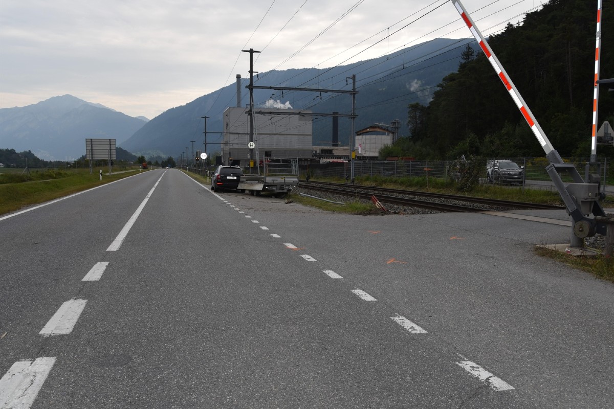 Ein 31-Jähriger beabsichtigte kurz vor 10 Uhr mit seinem Lieferwagen und Anhänger den Bahnübergang Vial in Domat/Ems zu überqueren. Er wartete an der Bahnschranke, bis sich diese öffnete und fuhr los.