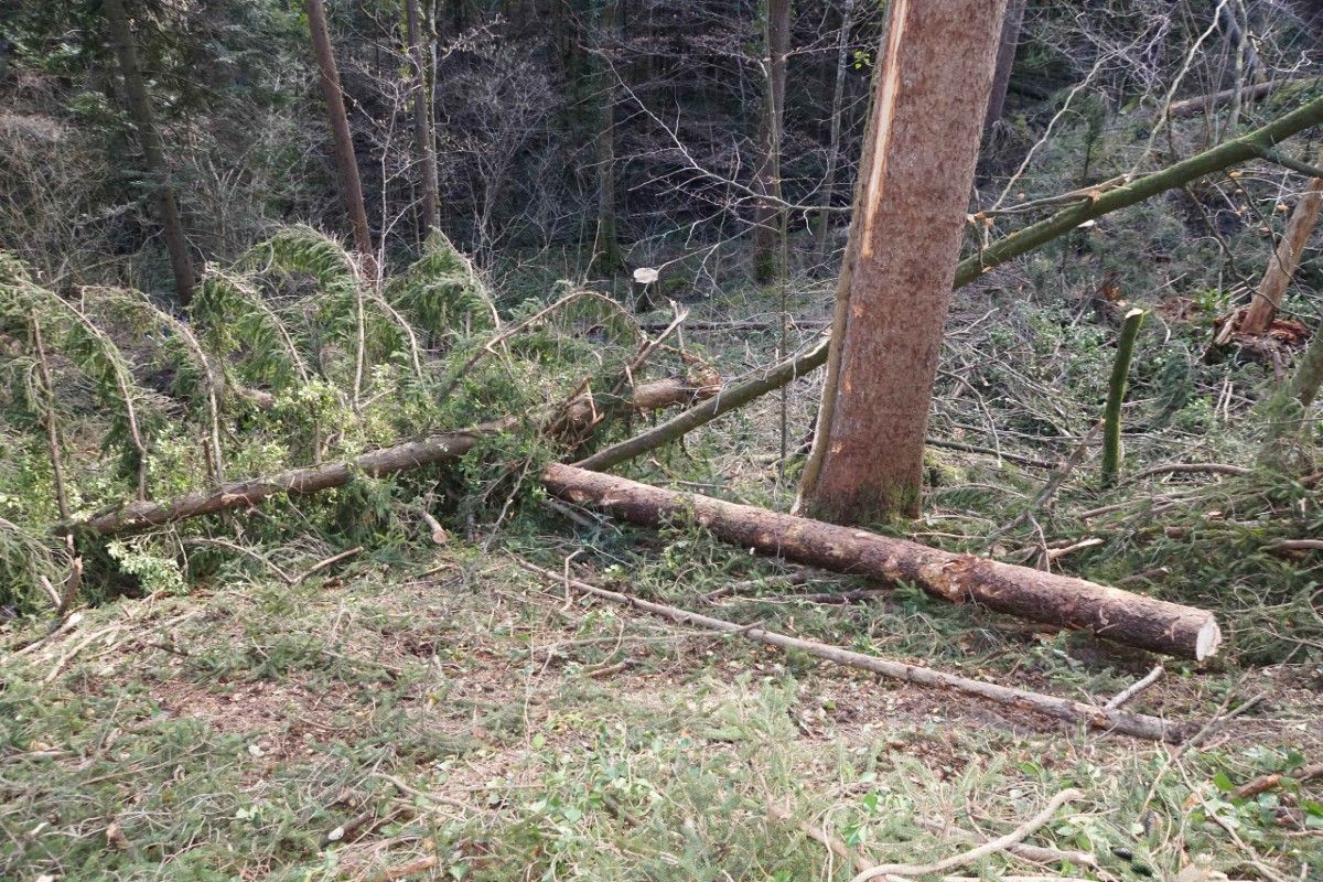 Am Mittwoch (23.02.2022), kurz vor 12 Uhr, hat sich ein 39-jähriger Mann bei Forstarbeiten in einem Waldstück im Löchli schwer am Arm verletzt.