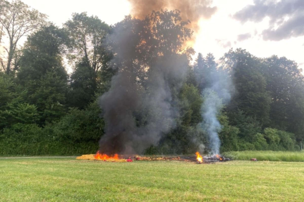 Der Vorfall ereignete sich am frühen Samstagmorgen (17. Juni 2023), kurz nach 06:00 Uhr, im Bereich «Mattenboden» in der Gemeinde Hünenberg. Beim Startmanöver ist ein Heissluftballon in Brand geraten und aus kurzer Distanz unsanft auf dem Boden gelandet.