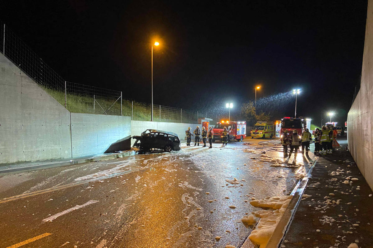 Am frühen Samstagmorgen kollidierte ein Automobilist auf der Staffeleggstrasse frontal mit dem Tunnelportal. Dabei geriet das Fahrzeug in Brand. Die lenkende Person konnte nur noch Tod geborgen werden. Die Strasse war für mehrere Stunden gesperrt.