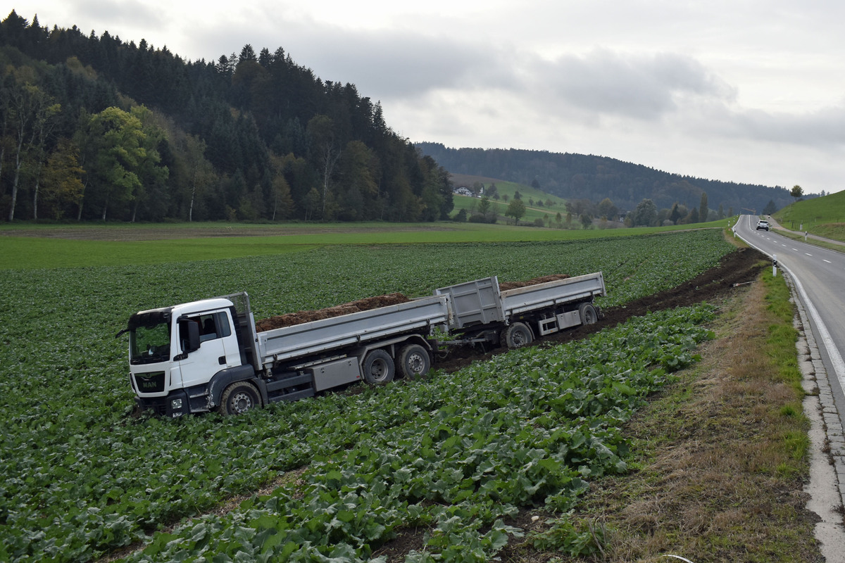 Auf der Luzernerstrasse zwischen Grossdietwil und Fischbach überholte am Dienstag (15. Oktober 2024, ca. 16:30 Uhr) ein Lieferwagen einen Anhängerzug. Dabei kam es zu einer Kollision zwischen den beiden Fahrzeugen, woraufhin der Anhängerzug von der Strasse in das rechtsseitige Wiesland geriet. Verletzt wurde beim Unfall niemand. Die Bergung des Anhängerzugs mit zwei Spezialfahrzeugen musste aufgrund der Sicherheit und der Dunkelheit auf Mittwochvormittag verschoben werden. Für den Verkehrsdienst standen die Feuerwehren Grossdietwil-Fischbach und Zell-Ufhusen im Einsatz.