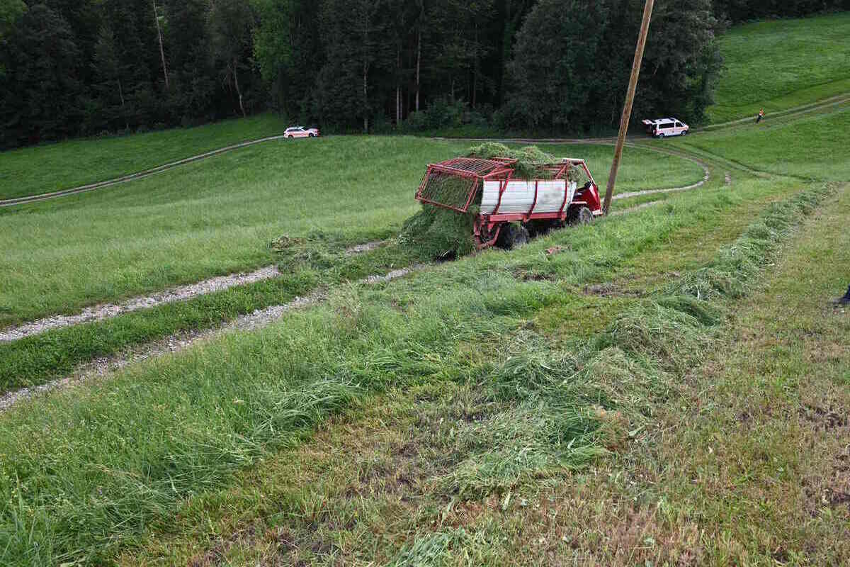 Ein 77-jähriger Mann war mit seinem Motorkarren auf der Wiese mit Eingrassen beschäftigt. Als er einen leicht abfallenden Abhang befuhr, kippte der Motorkarren. Dadurch fiel der Mann aus dem Fahrzeug und geriet darunter. Er wurde unbestimmt verletzt. Nach der medizinischen Erstversorgung durch den Rettungsdienst wurde er von der Rega ins Spital geflogen.