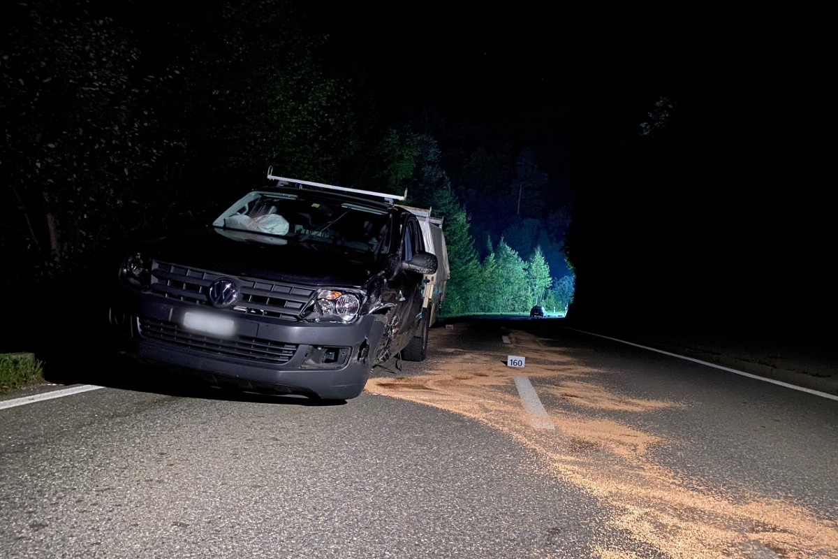 Gegen 21.30 Uhr fuhr gestern ein 39-jähriger Mann mit einem Pick-up auf der Walderstrasse Richtung Wald. Aus zurzeit ungeklärten Gründen kam es in einer links Kurve zu einer Streifkollision mit einem entgegenkommenden Personenwagen. Durch die Kollision wurde das vordere Rad des Pick-ups abgerissen. Dieses rollte weiter und prallte in einen nachfolgenden Personenwagen.