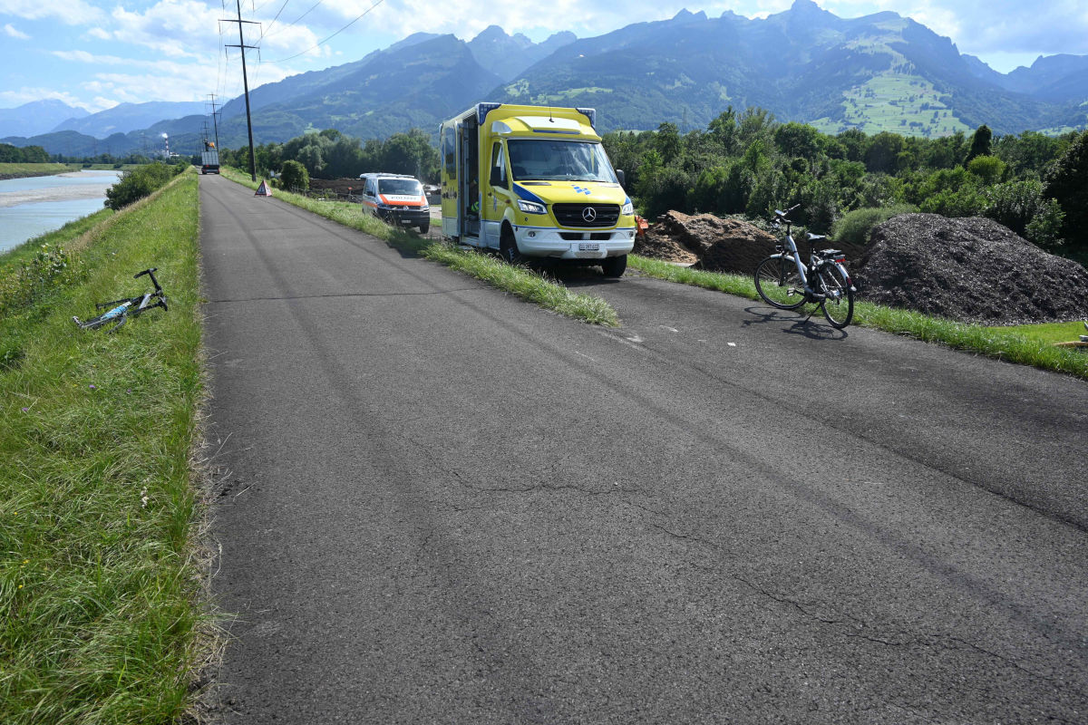 Am Donnerstag, 10. Juli 2025, kam es auf dem Rheindamm zu einem Unfall zwischen einem E-Bike und einem Rennvelo. Ein 84-jähriger E-Bike-Fahrer kollidierte beim Abbiegen mit dem Velofahrer. Er wurde leicht verletzt.