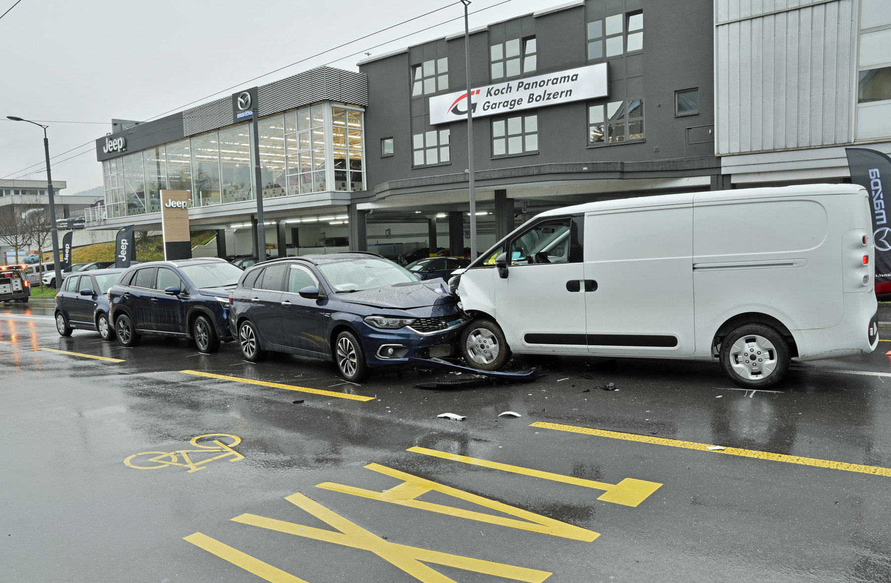 Durch die Wucht der Kollision wurde das Auto zurückgeschoben und beschädigte zwei nachfolgende Autos. Der 38-jährige Lieferwagenfahrer wurde leicht verletzt und durch den Rettungsdienst 144 ins Spital gefahren.