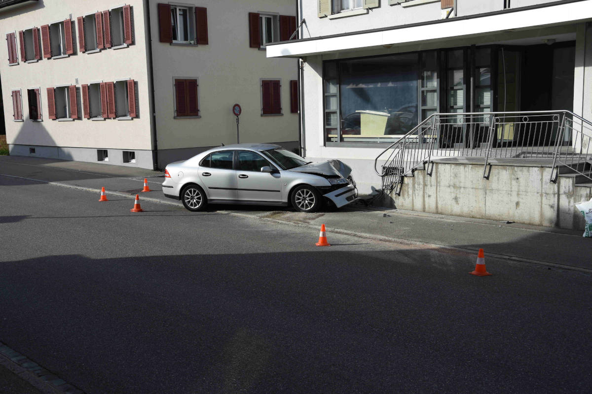 Die 75-jährige Autofahrerin fuhr in Richtung Stein. Dabei geriet sie mit ihrem Auto immer weiter nach links, über die Gegenfahrbahn hinaus und prallte schliesslich gegen eine Steintreppe einer dortigen Liegenschaft. Als Unfallursache steht ein medizinisches Problem im Vordergrund.