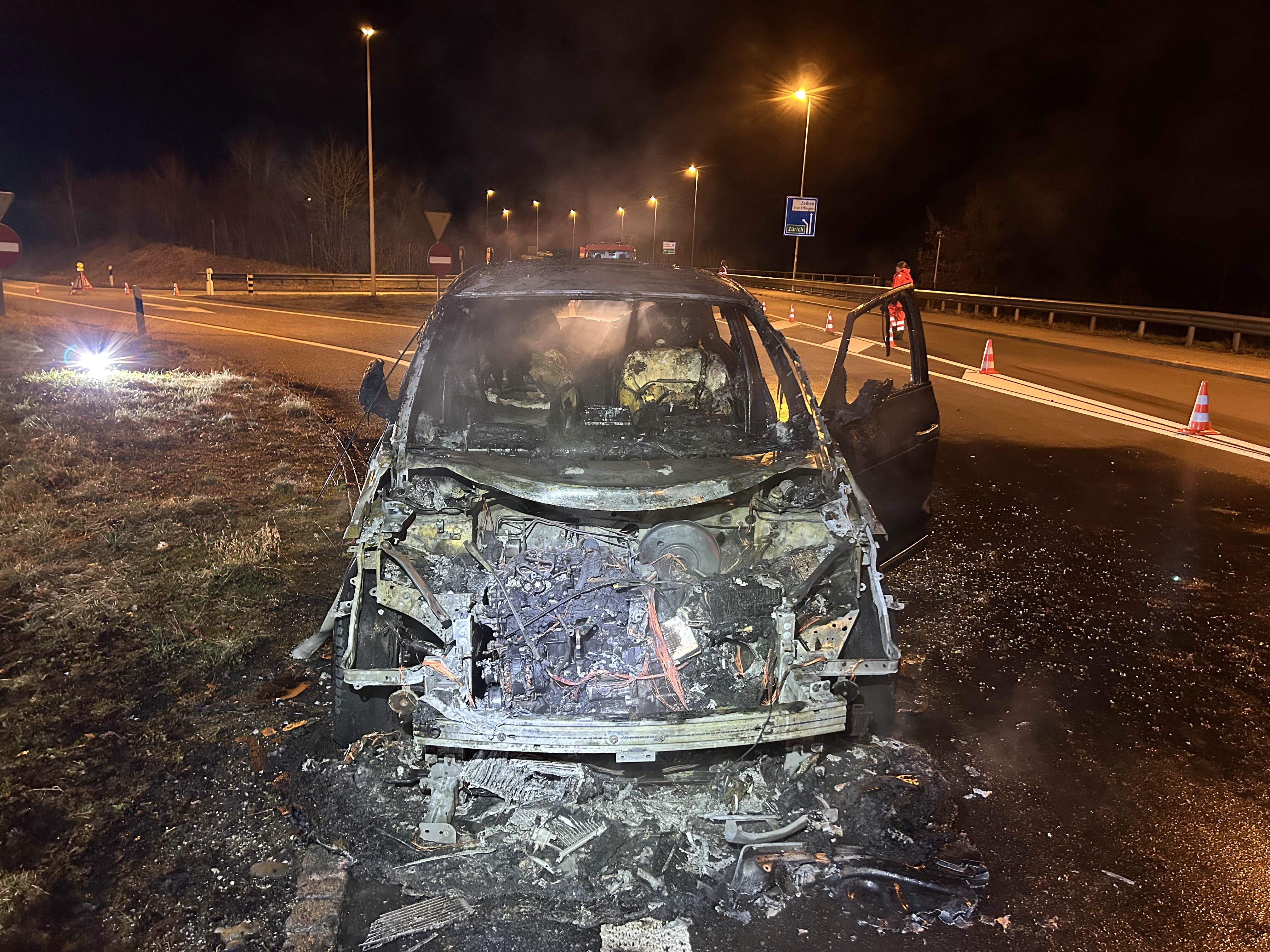 Die Lenkerin verliess die Autobahn bei Effingen und stoppte auf der Hauptstrasse beim Autobahnanschluss. Dort stand das Auto wenig später in Vollbrand.