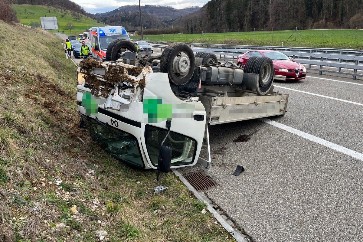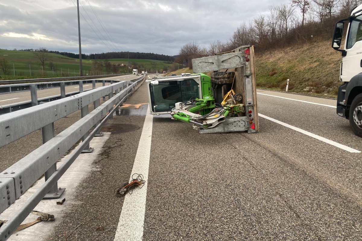 Auf der A3 in Fahrtrichtung Basel kam ein Anhänger eines Lieferwagens ins Schleudern und überschlug sich. Es wurde niemand verletzt.