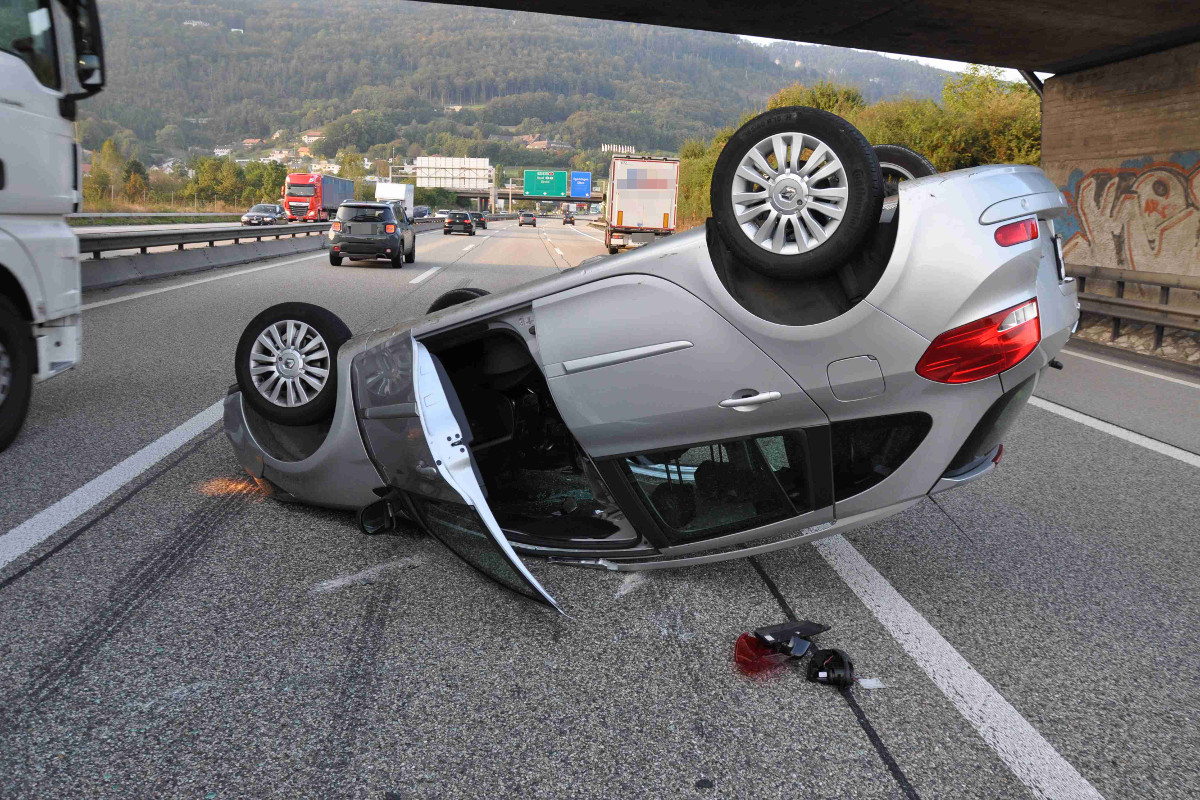 Auf der Autobahn A2 bei Egerkingen SO kam es am Montag zu einer Kollision zwischen einem Personenwagen und einem Sattelmotorfahrzeug. Das Auto überschlug sich und kam auf dem Dach liegend zum Stillstand. Verletzt wurde niemand.