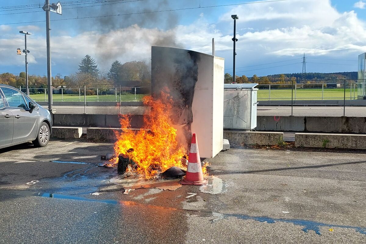 Ein danebenstehender Alt-Kleider-Container und ein parkiertes Fahrzeug wurden ebenfalls durch die Hitze in Mitleidenschaft gezogen. Genaue Angaben über die Schadenhöhe sind zurzeit noch nicht möglich. Die Brandursache wird durch Spezialisten der Kantonspolizei Solothurn untersucht.