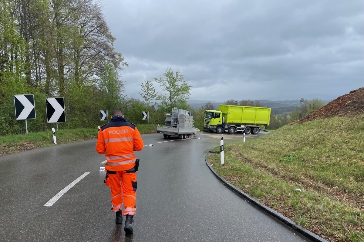 Bei einem Unfall zwischen einem Lieferwagen mit Anhänger sowie einem Lastwagen sind am Dienstagmittag (09.04.2024) in Hinteregg (Gemeinde Egg) zwei Personen verletzt worden.