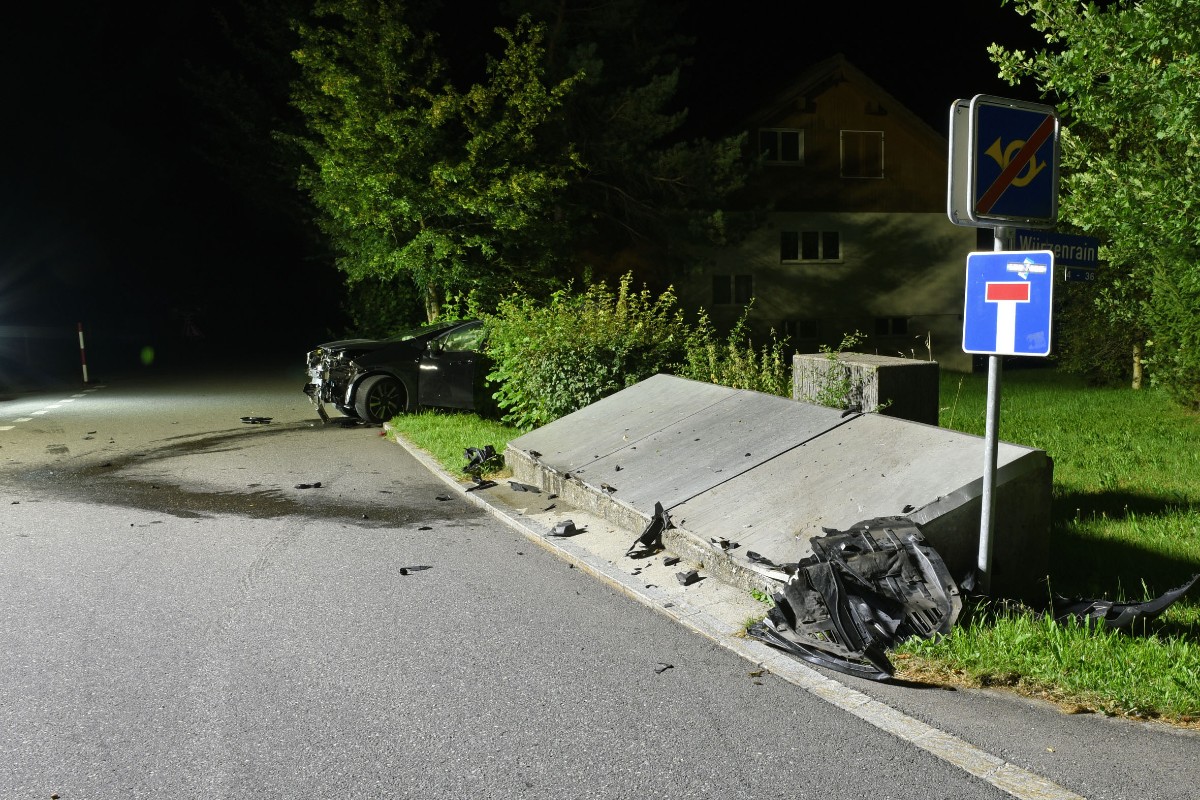 In Eigenthal im Kanton Luzern ereignete sich ein heftiger Selbstunfall. (Bildquelle: Luzerner Polizei)