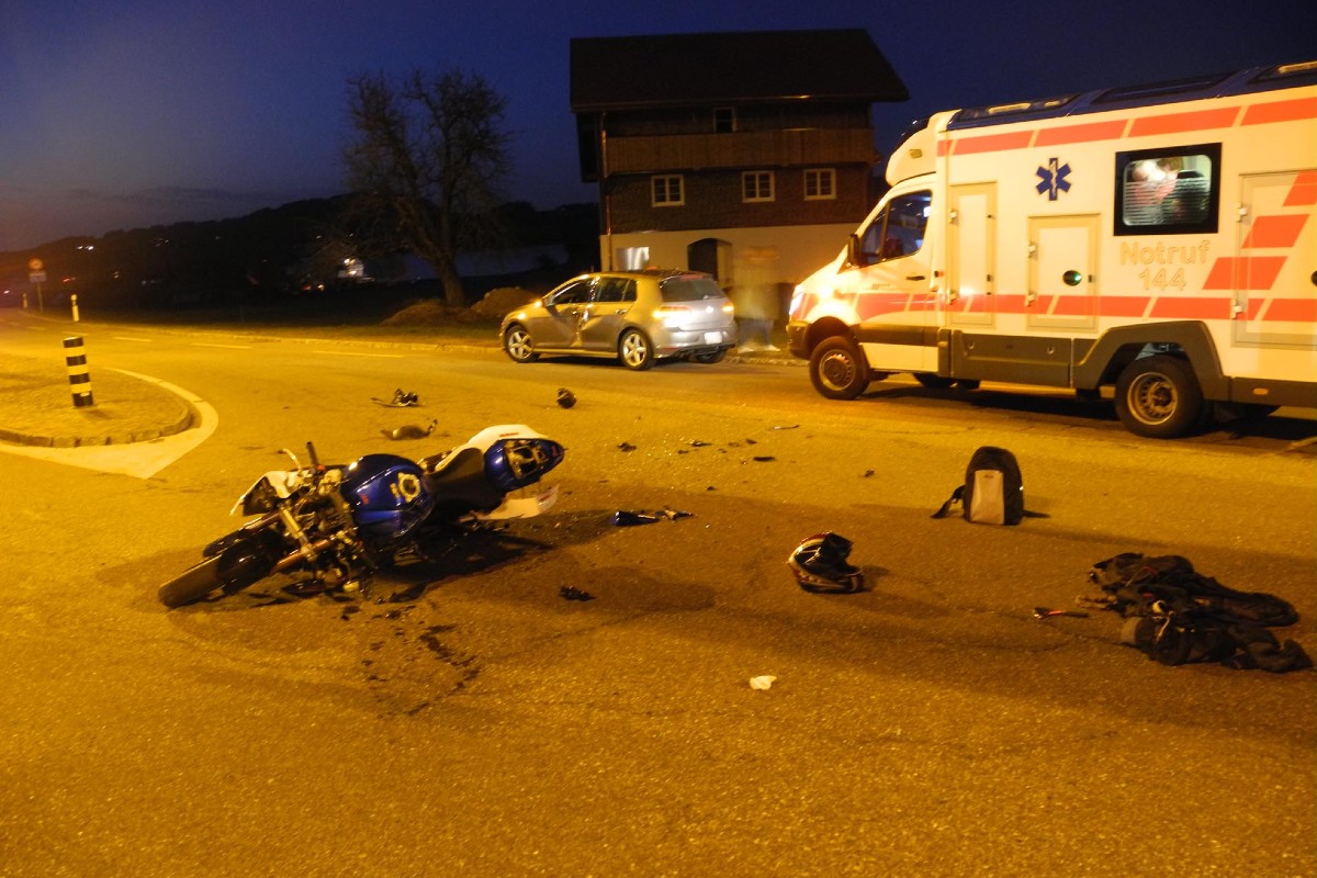 Eine 55-jährige Autofahrerin bog gestern um 20 Uhr von Einsiedeln kommend im Birchli auf die Umfahrungsstrasse ein. Dabei kam es zur Kollision mit dem von links herannahenden Motorrad.
