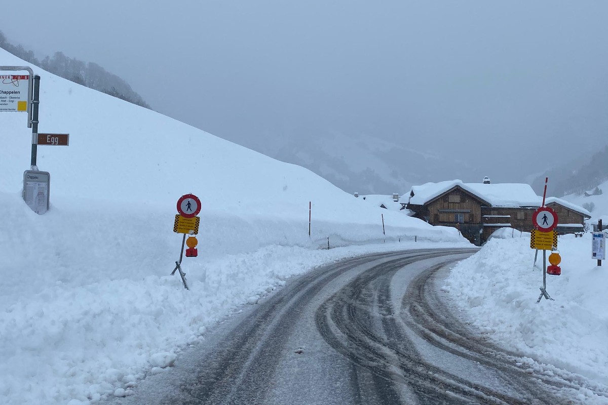 Durch die enormen Schneemengen in Elm muss mit Lawinenniedergängen gerechnet werden. Aus diesem Grund ist die Kantonsstrasse gesperrt.
