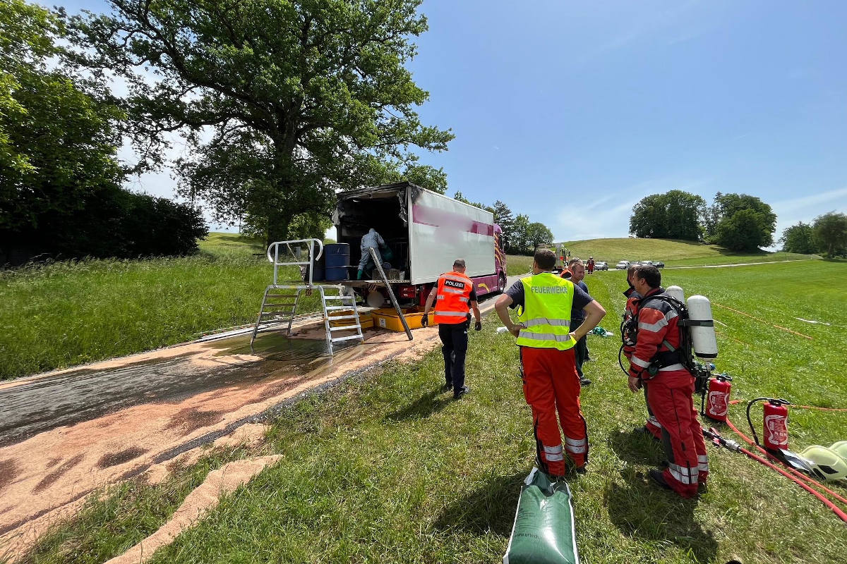 Beim Brand eines mit Gefahrgut beladenen Lastwagens ist am Montagmittag (23.5.2022) in Elsau hoher Sachschaden entstanden. Verletzt wurde niemand.