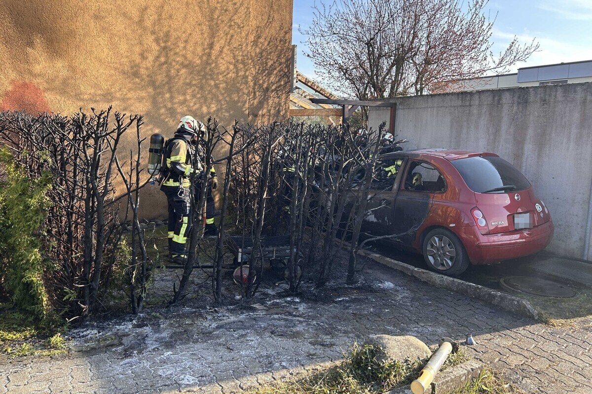 Die Flammen breiteten sich rasch aus. Während die Thuja-Hecke auf rund der Hälfte ihrer Länge niederbrannte, wurde das daneben parkierte Auto vollständig zerstört. Die Feuerwehr Surbtal konnte verhindern, dass der Brand auf die benachbarten Reiheneinfamilienhäuser übergriff.