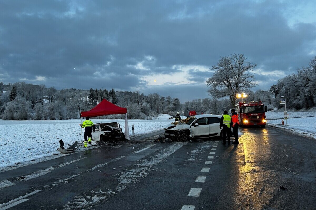 Die Frontalkollision ereignete sich am Freitag, 14. Februar 2025, gegen 05.30 Uhr auf der Surbtalstrasse zwischen Lengnau und Endingen. Auf der Ausserortsstrecke stiessen ein Porsche und ein Skoda frontal zusammen.