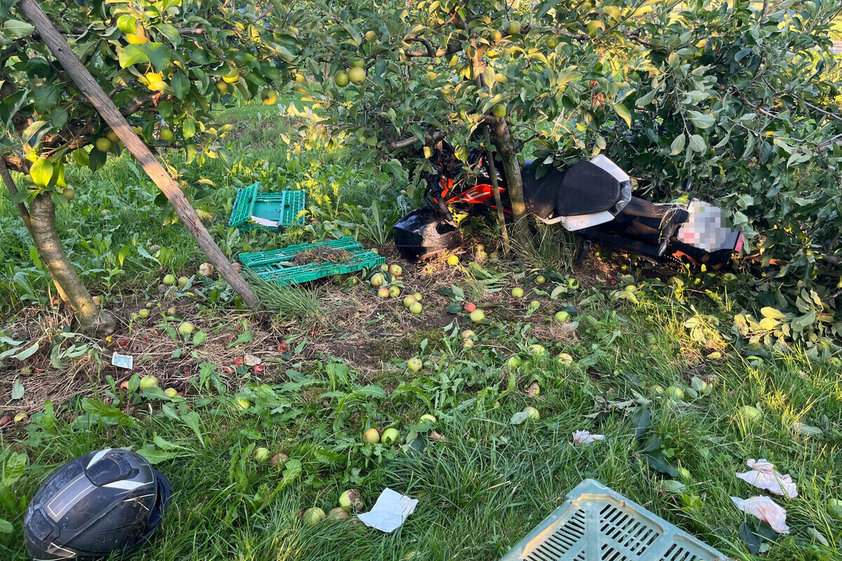 Engishofen TG - Motorradfahrer landet bei Unfall in Obstanlage