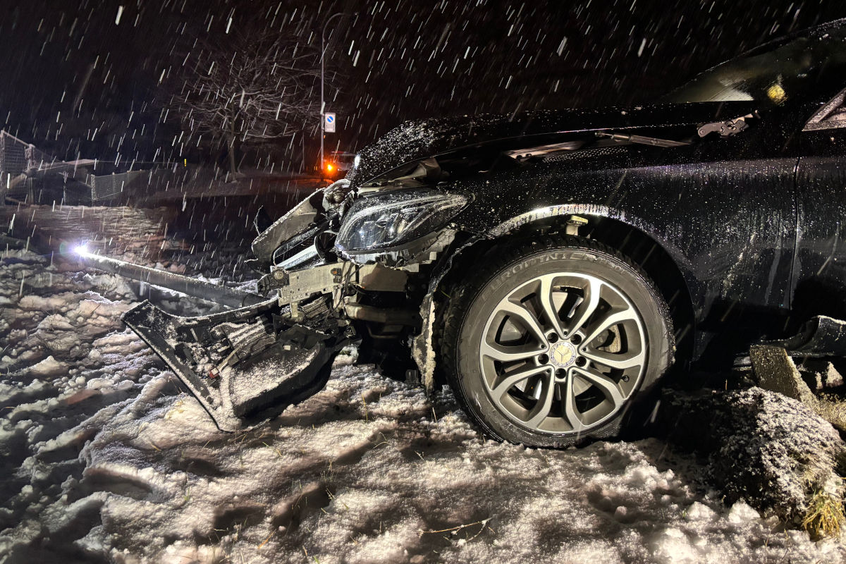 Am Samstag verunfallte ein Autolenker in Ennenda. Auf der schneebedeckten Strasse kam das Auto ins Rutschen und kollidierte mit einem Kandelaber. Verletzt wurde niemand