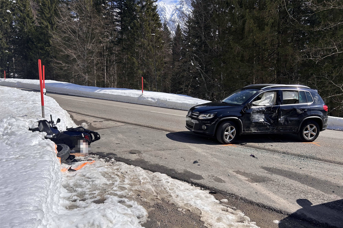 Am Freitagmittag (03.04.2026) ist es auf der Schwägalpstrasse zu einem Verkehrsunfall zwischen einem Auto und einem Motorrad gekommen.