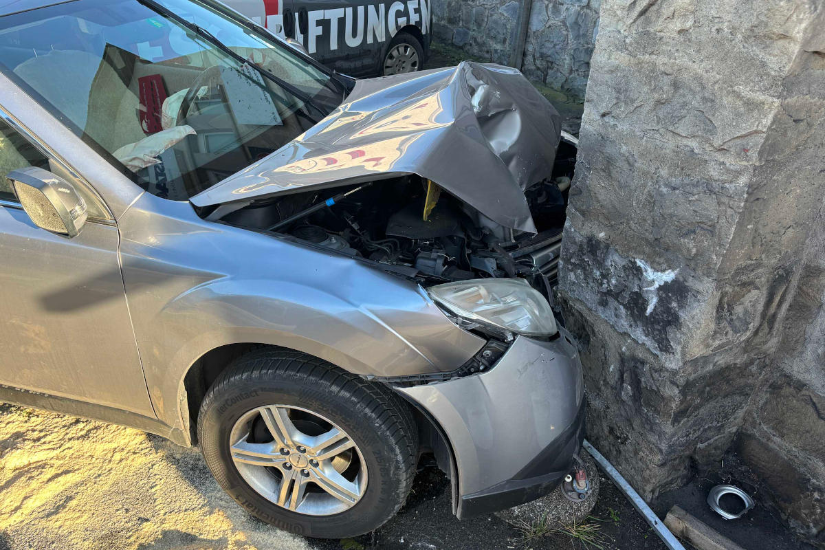 Eine Frau fuhr am Montagnachmittag mit ihrem Auto gegen eine Hausmauer. Dabei wurde sie verletzt und musste mit einem Krankenwagen ins Spital gebracht werden.