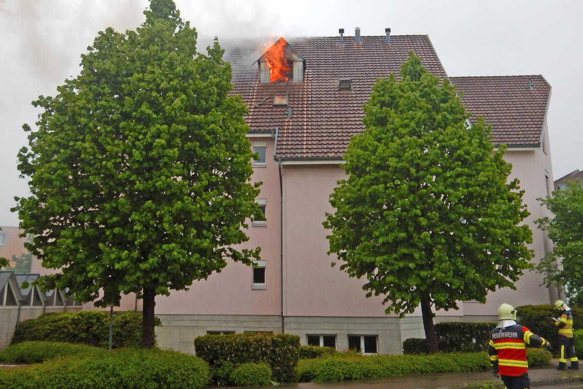 Beim Eintreffen der Einsatzkräfte schlugen bereits Flammen aus dem Dach über der Wohnung (Bildquelle: Kantonspolizei Thurgau)