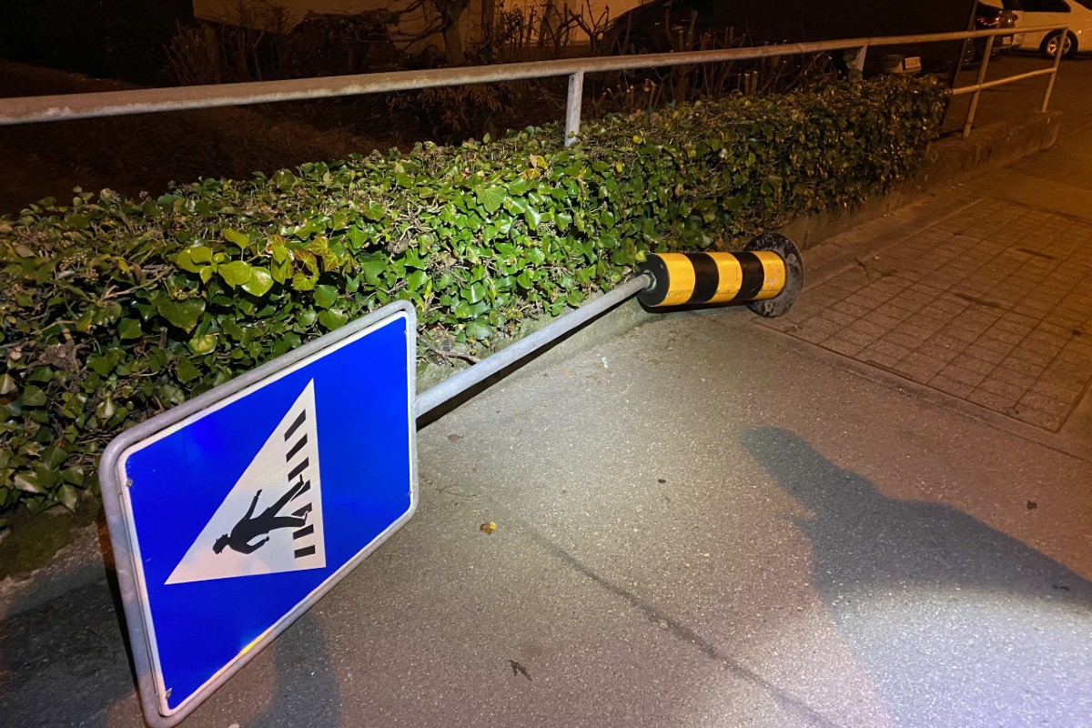 In Erlinsbach AG wurde ein Inselschutzpfosten gerammt. (Bildquelle: Kantonspolizei Aargau)
