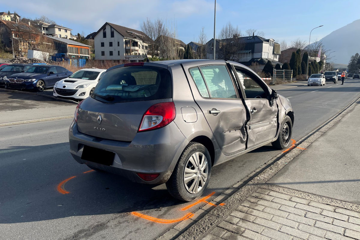 Der Renault wurde durch den einbiegenden Lieferwagen beschädigt. (Bildquelle: Landespolizei Fürstentum Liechtenstein)