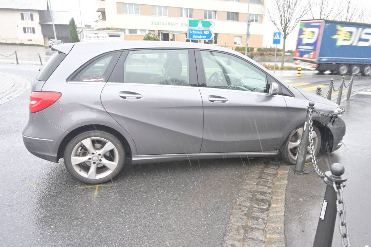 Gegen 09:25 Uhr fuhr ein Fahrzeuglenker in einem nicht fahrfähigen Zustand (Alkoholeinfluss), auf der Hauptstrasse ‘Essanestrasse’ in westliche Richtung und kollidierte im Kreisverkehrsplatz ‘Eintracht’ gegen einen Eisenpfosten. Am Personenwagen und Eisenpfosten entstand Sachschaden.