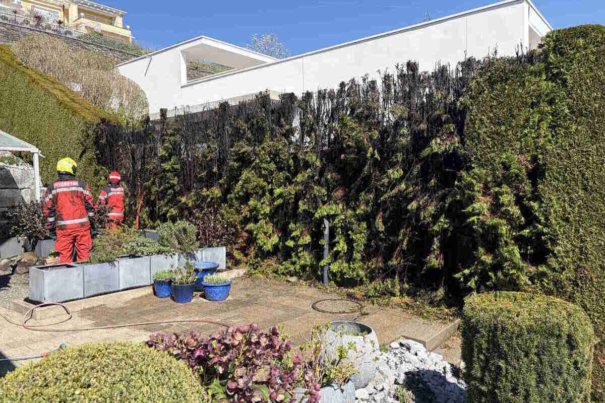 Gegen 14:30 Uhr war ein Anwohner an der Paradiesstrasse mit Gartenarbeiten beschäftigt. Unter anderem brannte er auch Unkraut ab. Dabei geriet die angrenzende Thuja auf einer Länge von mehr als fünf Metern in Brand.