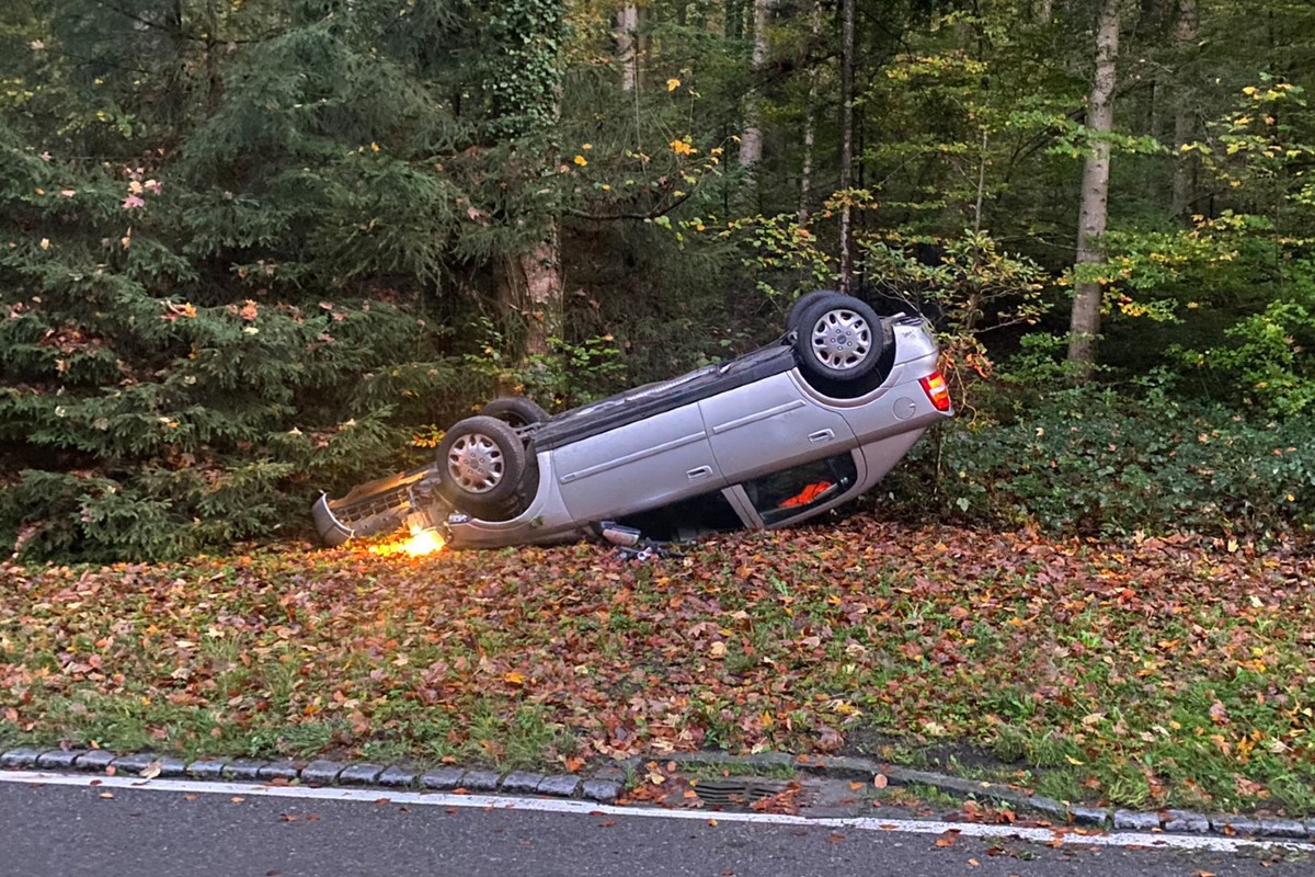 Eschenz TG - Beim Unfall ist der Opel auf dem Dach zum Stillstand gekommen