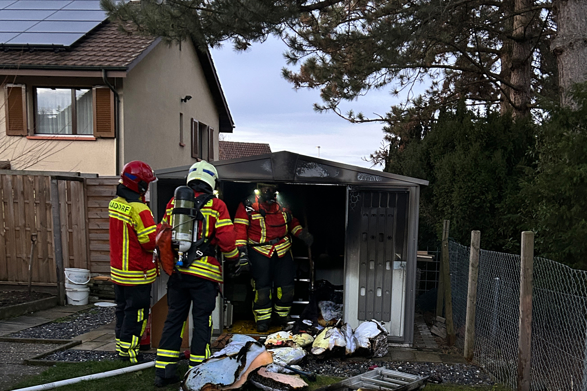 Kurz nach 16.45 Uhr ging bei der Kantonalen Notrufzentrale die Meldung ein, dass an der Obstgartenstrasse ein Gartenhaus brenne. Bis zum Eintreffen der Feuerwehr bekämpften die Besitzerin und ein Nachbar den Brand mit einem Gartenschlauch und einem Feuerlöscher.