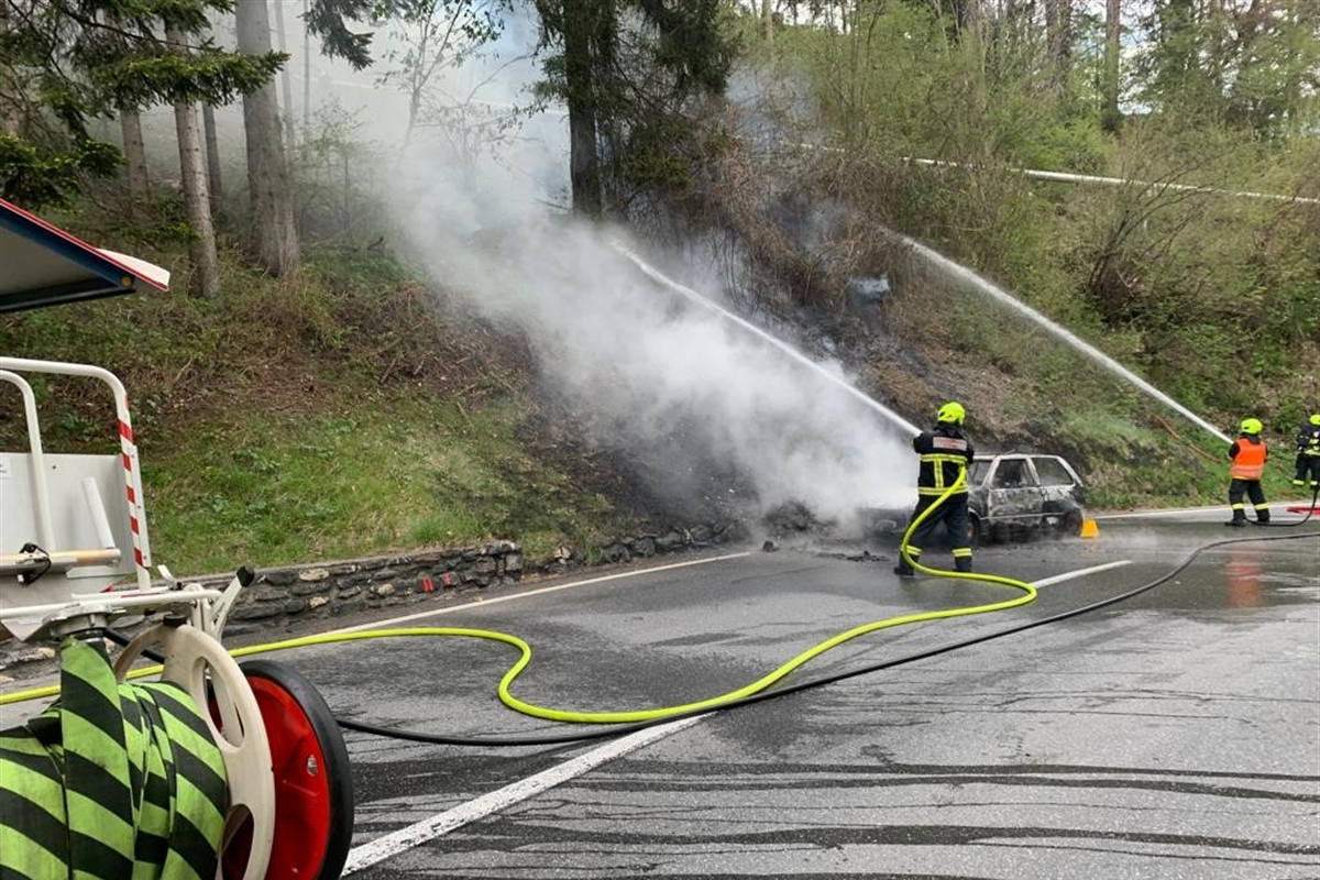 Am Sonntag ist auf der Hauptstrasse in Chur ein Auto in Brand geraten. Die Feuerwehr löschte das Fahrzeug und konnte eine Ausweitung des Brandes auf den Wald verhindern.