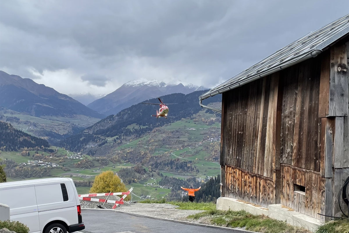 Am Donnerstag, 23. Oktober 2025, kam es in Falera zu einem Arbeitsunfall auf einer Baustelle. Ein Arbeiter wurde von einem 500 Kilogramm schweren Bauelement getroffen. Der Mann wurde verletzt per Rega ins Spital Chur geflogen.