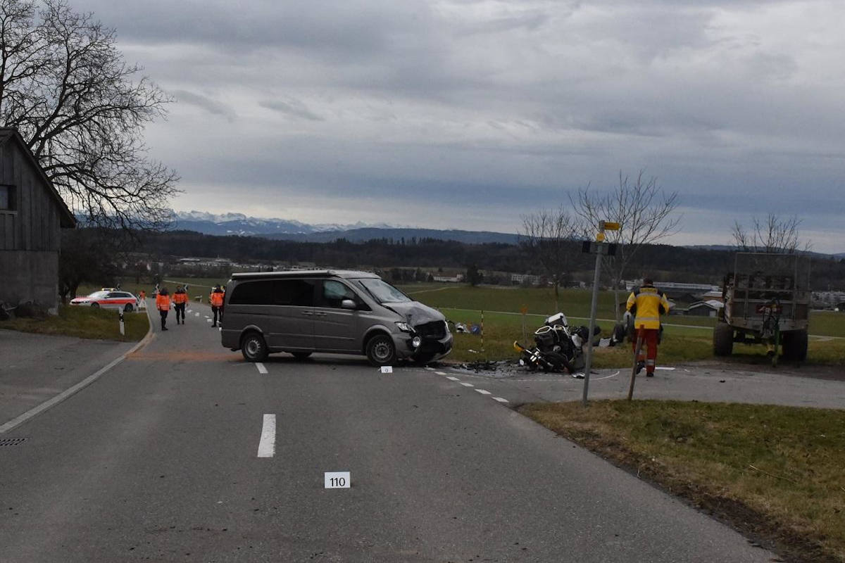 Bei einer Kollision zwischen einem Personenwagen und einem Motorrad sind am Freitagmorgen (18.02.2022) beim Weiler Reitenbach (Fehraltorf) der Zweiradlenker und seine Mitfahrerin schwer verletzt worden.