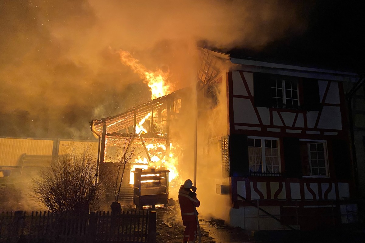 Die Bewohnerinnen im zweiten Hausteil konnten sich selbständig in Sicherheit bringen und blieben unverletzt. Der Sachschaden beträgt einige hunderttausend Franken.