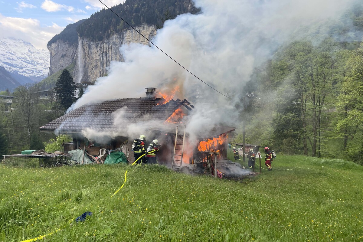 Am Samstagmorgen, 06.05.2023, brannte ein Einfamilienhaus in Lauterbrunnen. Das Feuer hat das Haus so zerstört, dass dieses nicht mehr bewohnbar ist. Die Brandursache muss noch ermittelt werden.