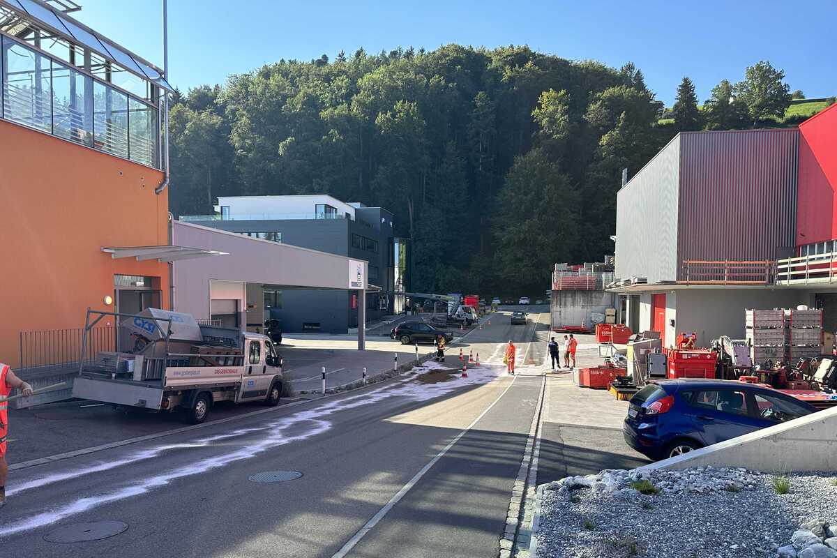 Pfäffikonerstrasse in Feusisberg ausrücken. Ein Dieseltank ist beim Abladen von einem Lastwagen zu Boden gefallen und in der Folge flossen rund hundert Liter Dieselöl aus. Durch sofortiges Eingreifen von anwesenden Arbeitern konnte verhindert werden, dass die Flüssigkeit in die Meteorschächte lief. Das ausgelaufene Öl wurde durch die Feuerwehr gebunden. Zudem musste die Strasse anschliessend mit einer Reinigungsmaschine geputzt werden.