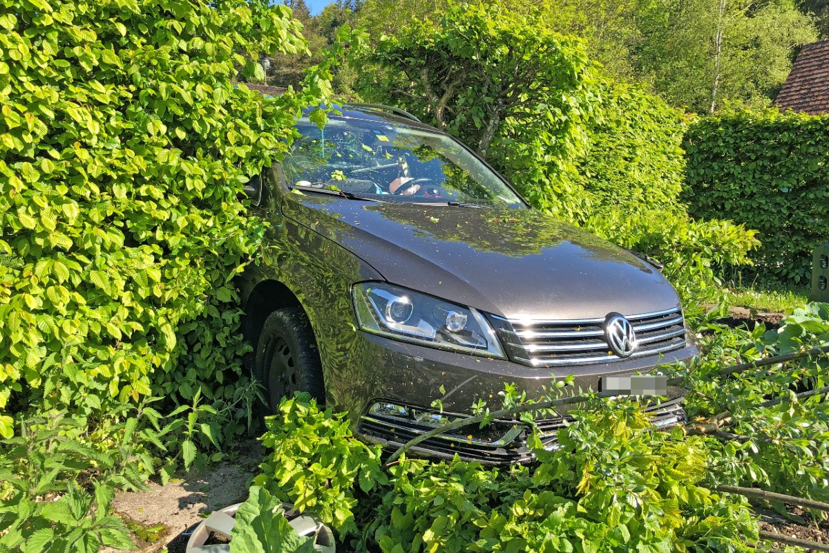 Ein 54-Jähriger fuhr mit seinem Auto um 17.15 Uhr vom Parkplatz einer Liegenschaft auf die Buhwilerstrasse. Dabei kam es zur frontal-seitlichen Kollision mit dem Auto einer 23-Jährigen, die in Richtung Buhwil unterwegs war. Durch den Zusammenstoss geriet das Auto des Mannes nach rechts von der Strasse, durchbrach eine Hecke und kam in einem Garten zum Stillstand.