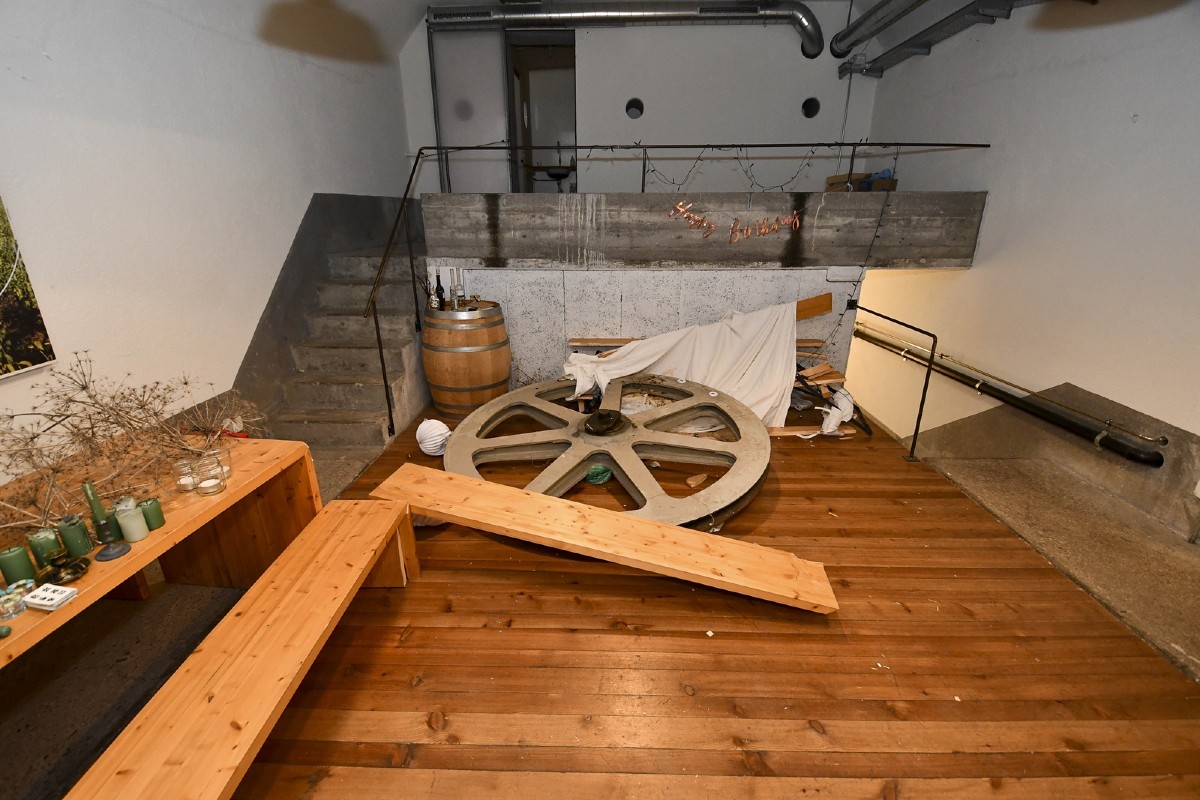 Die drei Männer brachten das Rad in Bewegung, worauf sich dieses löste. Ein 35-Jähriger wurde unter dem rund 500 Kilogramm schweren Umlenkrad begraben. Anwesende Gäste konnten das Rad gemeinsam anheben und den erheblich Verletzten bergen. Ein 37-Jähriger wurde beim Herunterfallen des Rades von diesem getroffen und dabei ebenfalls verletzt.