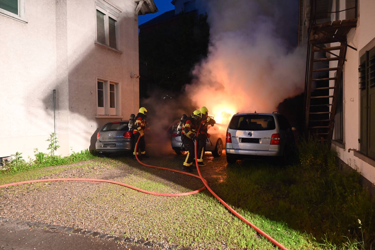 Mehrere Auskunftspersonen meldeten der Kantonalen Notrufzentrale St.Gallen ein brennendes Auto auf einem Parkplatz an der Wilerstrasse. Die ausgerückte Feuerwehr traf das Auto in Vollbrand an. Sie konnten den Brand rasch löschen und ein Übergreifen auf zwei daneben geparkte Autos sowie auf zwei angrenzende Häuser verhindern. Das vom Brand betroffene Auto erlitt einen Totalschaden. Die angrenzend geparkten Autos wurden durch die vom Brand entstandene Hitze beschädigt.
